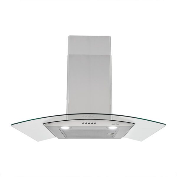 - Campana para cocina con cristal curvo, hecha de acero inoxidable, fácil de limpiar, sólida y duradera.