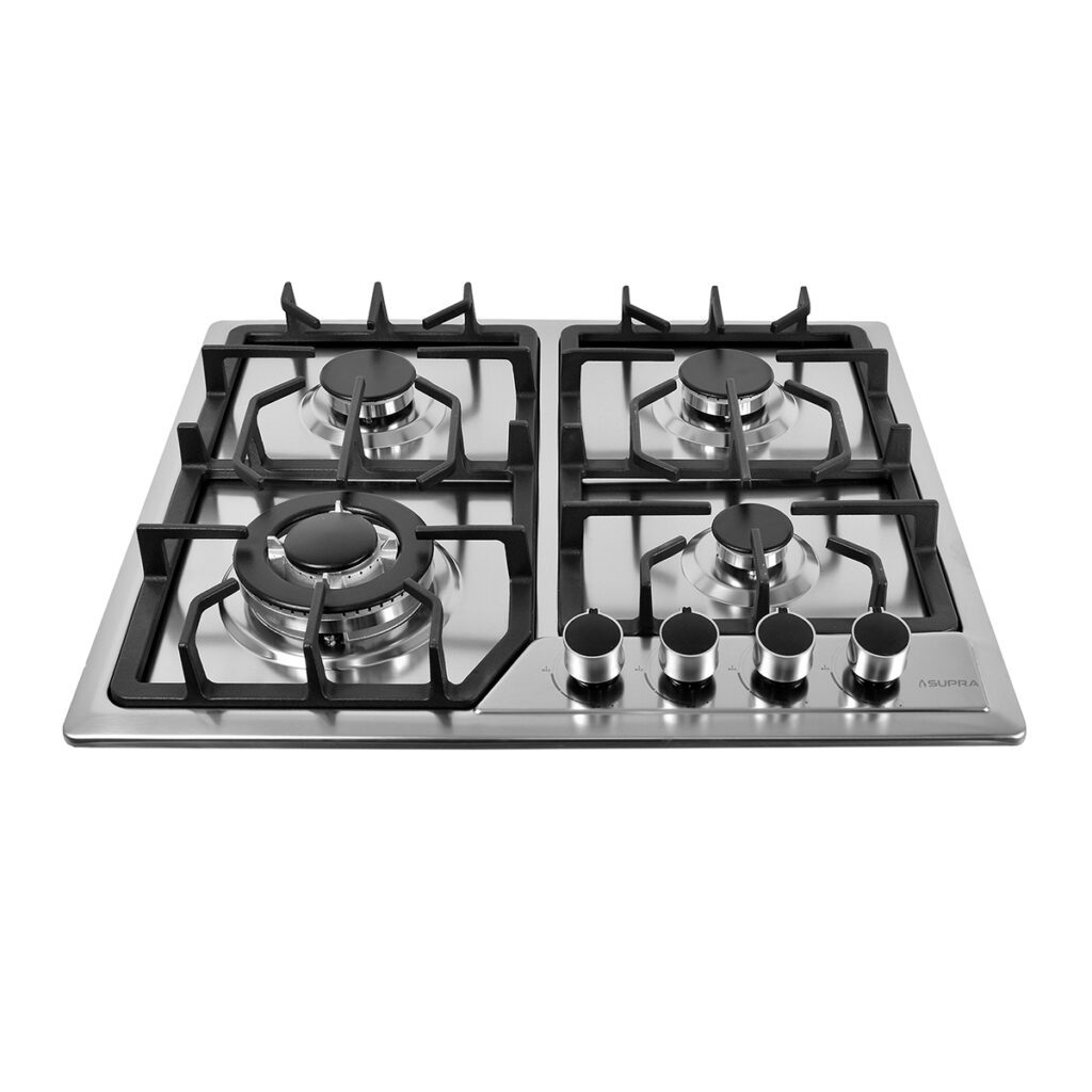 de 60cm con cubierta de acero inoxidable. - Parrillas de hierro fundido .