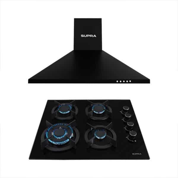 - Parrilla a gas de 4 quemadores para empotrar de 60 cm con cubierta de cristal templado color negro.