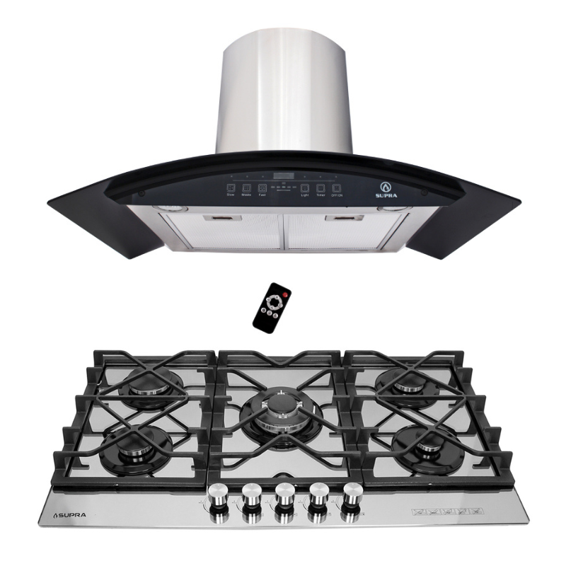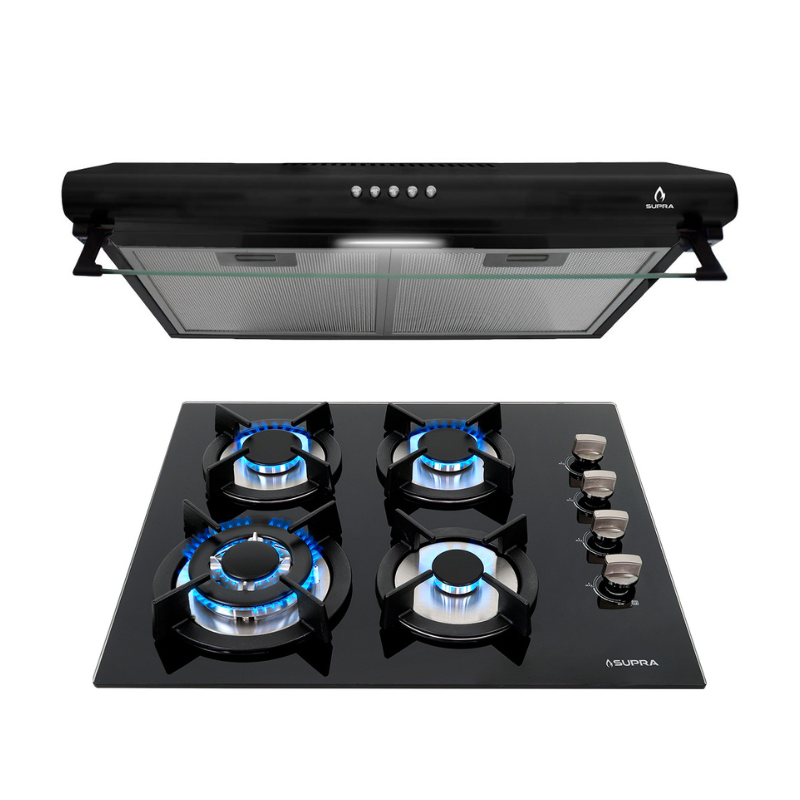 • Estufa de gas empotrable de 76 cm modelo 5Q-PS-76 de la marca SUPRA con encendido electrónico, en cada uno de sus quemadores y válvula de seguridad.