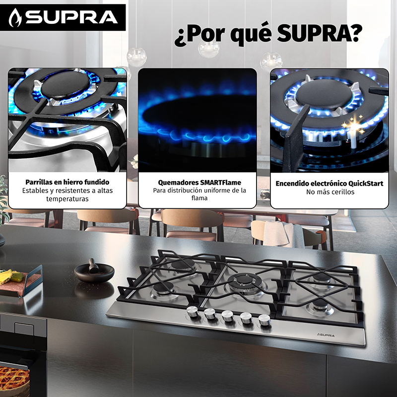- Encendido electrónico en todos los quemadores.