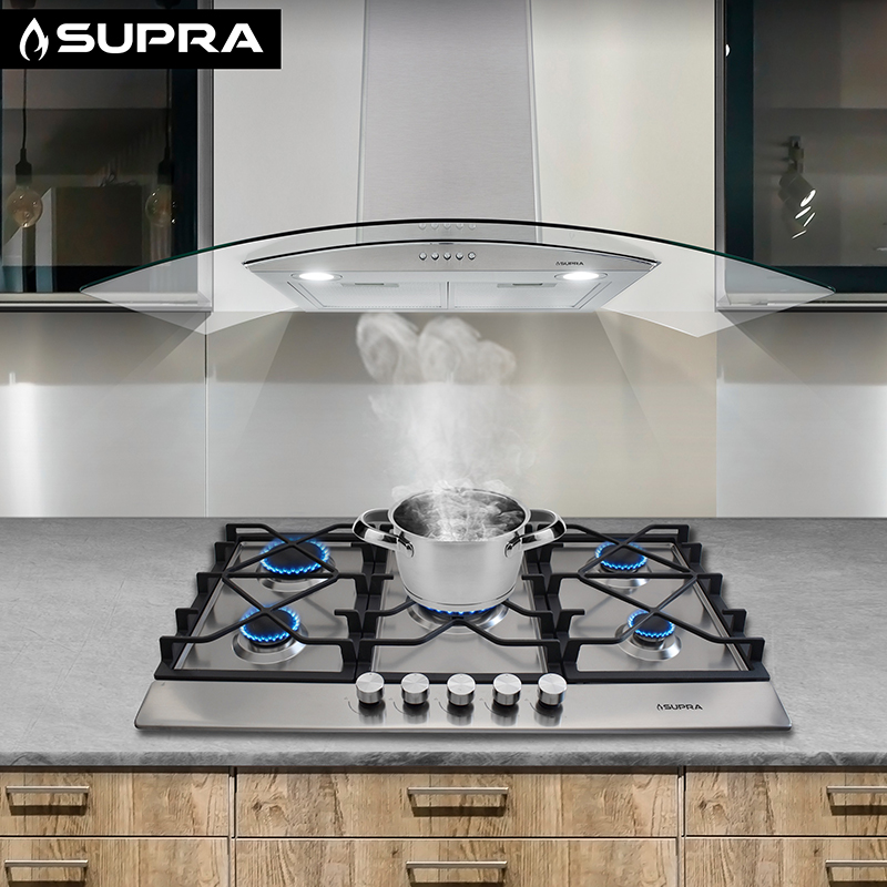 - Parrilla a gas de 5 quemadores para empotrar de 87 cm, con cubierta de acero inoxidable.