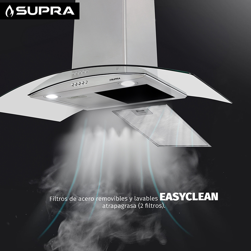 - Motor tipo turbina (turbine engine power) de 143 W con capacidad de extracción máxima de 460 m³/h.