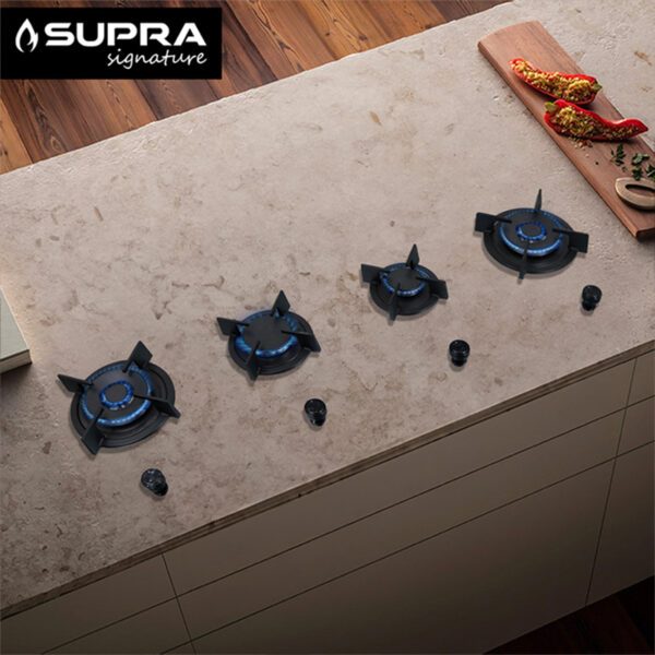 • Cuatro quemadores SABAF SMARTFlame. Los quemadores SABAF, por su tecnología italiana y construcción, ofrecen mayor eficiencia energética, seguridad y durabilidad. Obteniendo una cocción más rápida y uniforme.